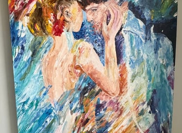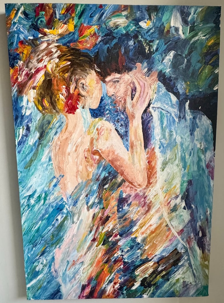Un abrazo suspendido entre la luz, el silencio y la emoción 60x80 cm
