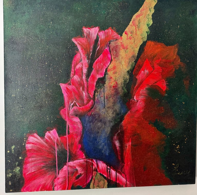 Una flor que florece en la penumbra, donde el silencio se vuelve color.